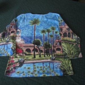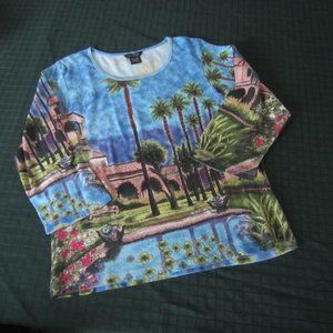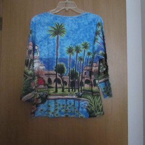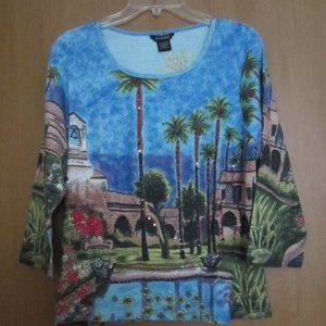 RAAKHEE Women's Multicolor Graphic 3/4 Sleeve Top Size PXL Sequins, Beads