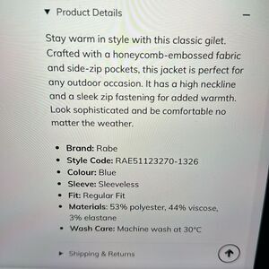 RABE HONEYCOMB EMBOSSED GILET JACKET. BLUE.
