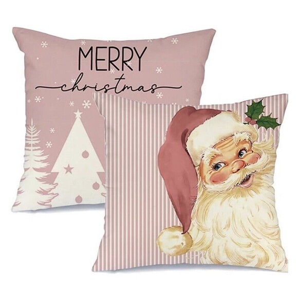 RABUSOFA Pink Santa Claus Christmas Tree Pillow Covers 18 x 18-Inch, Cute!! New!