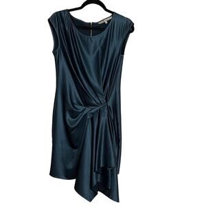 RACHAEL Rachel Roy Gathered Asymmetrical Sleeveless Dress Teal Green Size S