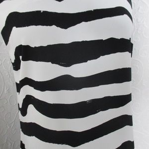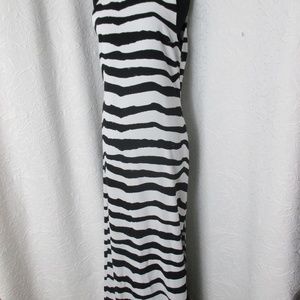 lovely sleeveless wave stripe black and white maxi "all seasons" dress with dramatic 27" leg slit...BUST MEASURES: 19"...WAIST: 18"...HIPS: 20"..TOP TO HEMLINE: 57"