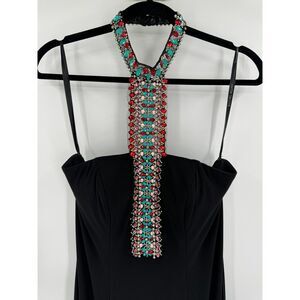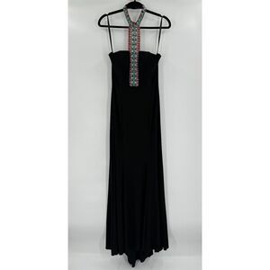 RACHEL ALLAN Black Beaded Choker Halter Top Backless Princess 2090 Prom Dress 8