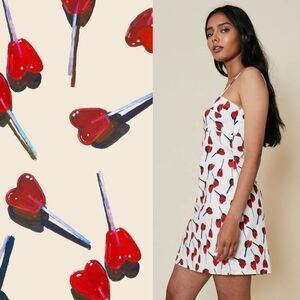 Spring, Summer, Feminine, Flirty, Cute, Coquette girl, Girly, Strappy, Short dress, Unique, Conversation print, Art to wear, Cheeky, Girlhoodcore, Party, Event, Night out