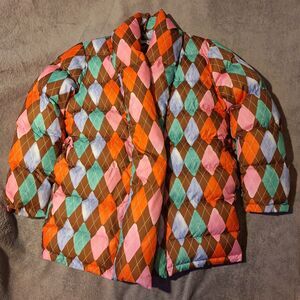 RACHEL ANTONOFF Toni Argyle Painted Puffer Jacket Women XS NWOT Soft