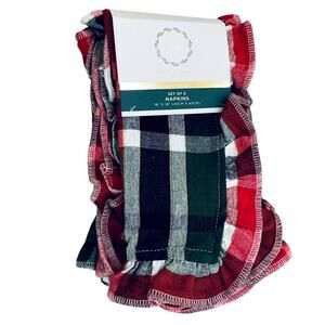 RACHEL ASHWELL Farmhouse Set 6 Christmas Plaid Cloth Napkins Red Green Gold NWT