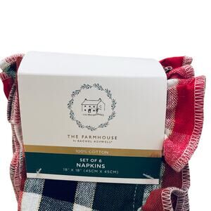 Rachel Ashwell Farmhouse CHRISTMAS PLAID Napkins Set of 6 Cotton 18" x 18" New