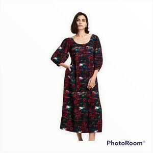RACHEL COMEY x TARGET Black Red Floral Kodak Balloon Sleeve Midi Dress