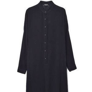 RACHEL COMEY Black "Solicitous" Dress / US Sz XS, S. Gorgeous, lightweight tunic-style dress for casual, formal, or travel wear. Loose-fitting for a sophistaced yet laid-back look. Featured dolman sleeves, collared neckline, and buttons at front.