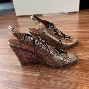 RACHEL COMEY Bronze Lace Up Open Toe Wedges