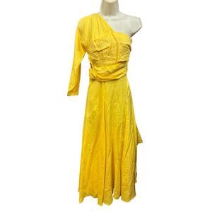 RACHEL COMEY Tipple One Shoulder Pleated Linen Asymmetrical Dress in Yellow Size