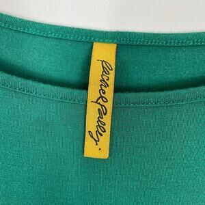 Rachel Pally modal/spandex midi dress in a beautiful emerald green. Jewel neckline, 3/4 sleeves, peplum waist. Vertical seams to front and back of skirt. 92% modal, 8% spandex. Size small