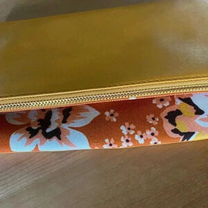 RACHEL PALLY REVERSIBLE Orange Yellow Canvas & Leather Floral Print CLUTCH