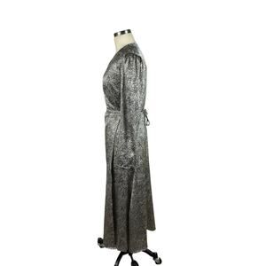 RACHEL PARCELL Cheetah Print Long Sleeve Satin Wrap Dress Women's Size Small