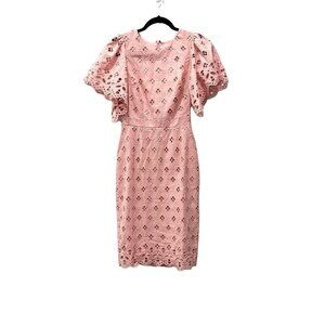 RACHEL PARCELL Eyelet Sheath Pink Midi Dress 100% Cotton Size XXS NWOT