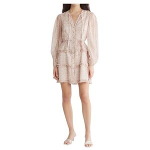 RACHEL PARCELL LEOPARD PRINT LACE SLEEVE RUFFLE MINI DRESS. Size XXL.