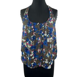RACHEL RACHEL ROY Pleated Button Henley Floral Tank Top Blouse Flowy XS