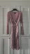 A hint of gold metallic makes this blush hue so pretty and soiree perfect! Tapered long sleeves balances a V-neckline and overlapping skirt detail that shows a hint of leg. Cinching at the waist gives you a defined shape that's ready for a bare leg and strappy sandal.