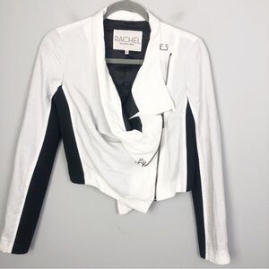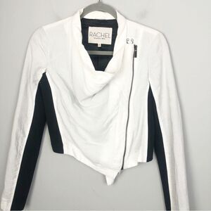 RACHEL ROY | Asymmetrical Black & White Moto Cropped Jacket Women’s Size X-Small