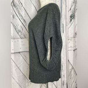 Gray specked wool blend sweater with a wide cut and slouch shoulders