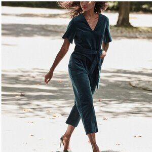RACHEL ROY Layla Teal / Green Wide Wale Corduroy Jumpsuit Tie Waist Festive Sz 8