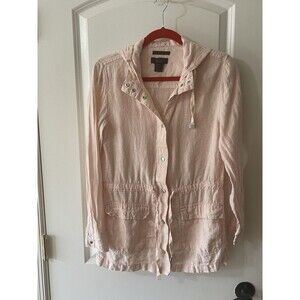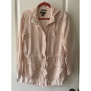 RACHEL ROY Size XS 100% linen Pink Hooded Jacket Snap Button Down.
