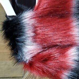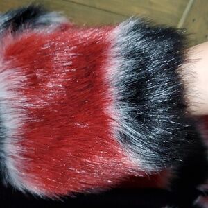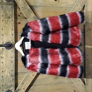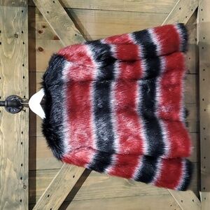 RACHEL ROY VEGAN FUR SHORT COAT SIZE XS BLACK RED MOBWIFE CLUBWEAR GOING OUT