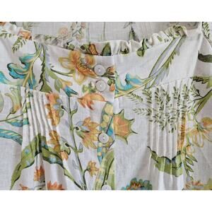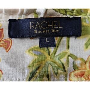 RACHEL ROY Women’s L Blouse Linen Blend Tropical Floral Button Up Cropped 42"