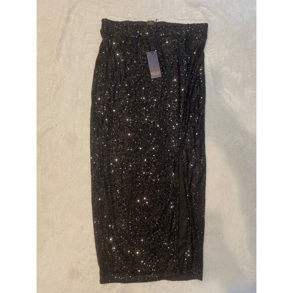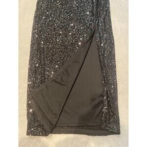 RACHEL ROY Women's Sequin Ruched Slit Skirt Medium Black Stretch Lined NWT