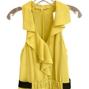 RACHEL ROY NEON YELLOW (CHARTREUSE) RUFFLE V-NECK RACERBACK BLACK ELASTIC WAIST MINI DRESS POCKETS