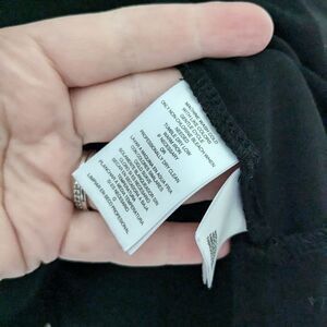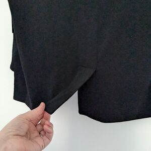 black, V-Neck, pleat front, blouse like style, great for layering under a blazer or cardigan at work.