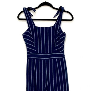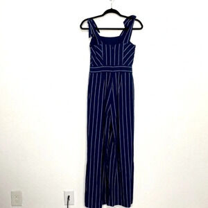 RACHEL Rachel Roy Blue White Linen Blend Striped Sleeveless Jumpsuit Size 0