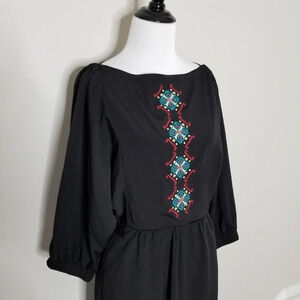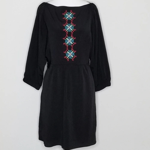 RACHEL Rachel Roy for Nordstrom black dress with beautiful Aztec tribal boho embroidery down front. Open back with button closure. Excellent preowned condition.