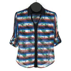 RACHEL Rachel Roy Button Down Blouse Women's Size 2 Roll Tab Geometric Pockets