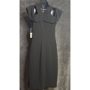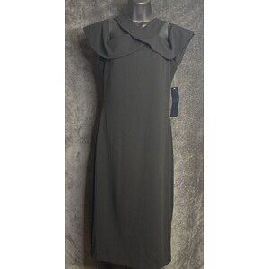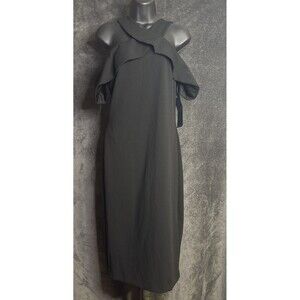 The product is a stylish Rachel Rachel Roy dress in black, featuring a cold shoulder sleeve design with ruffle accents and a halter neckline. This knee-length pencil dress is suitable for party, cocktail, or formal occasions. Made from a blend of polyester, spandex, and viscose, it is designed for regular sizing in size M. The sleek and elegant look of the dress makes it a versatile option for any woman's wardrobe, reflecting the brand's attention to detail and style.