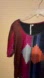 Vibrant blouse with geometric pattern. Features bold stripes and shapes. Perfect for a chic style.