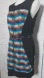This is a sleeveless dress by Rachel Roy with a multicolored geometric pattern panel and a front zipper. It is a sheath or shift-style dress. Above the knee length fully lined.