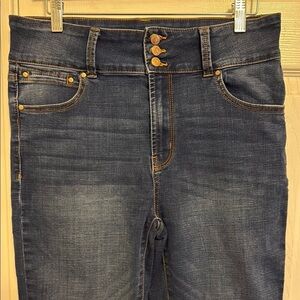 These high rise blue jeans from RACHEL Rachel Roy offer a classic fit with a modern twist. The medium to dark blue denim provides a timeless look, while the full-length design ensures a sleek silhouette. Perfect for any occasion, these jeans are a versatile addition to any wardrobe. Does stretch. Excellent condition