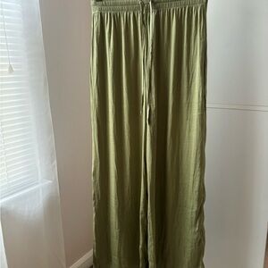 Beautiful olive green wide leg palazzo pants by Rachel Rachel Roy! These flowy pants feature an elastic waistband for comfortable all-day wear. Perfect for casual outings or dressing up with heels.