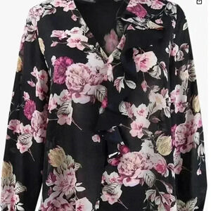 RACHEL Rachel Roy Layla Top SMALL Floral Asymmetrical Ruffled Feminine Career