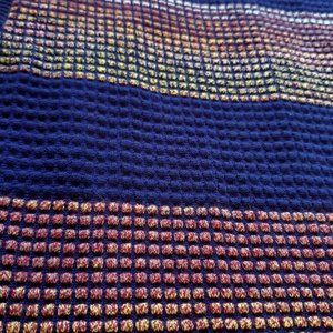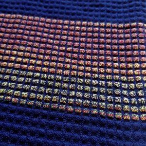 Spacedye color blocked with navy blue. Waffle knit texture. Flattering fit with a midi length. Great for summer to fall. Pairs just as well with a pair of sandals as it does with knee high boots and a cardigan or denim jacket.