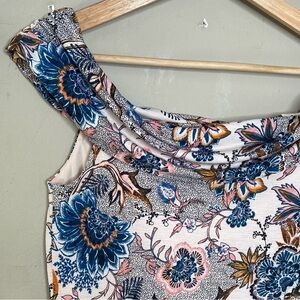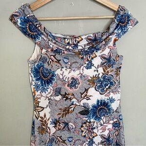 Brand new with tags Rachel Roy Floral A-Line Off-Shoulder Dress Size Medium with side Slit . In the color Blushcombo Style tags: Floral Midi length A-line silhouette Sleeveless Spring/summer Romantic Feminine Bohemian Garden party Casual chic Daytime