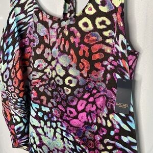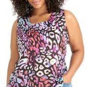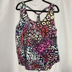 A colorful animal print enlivens a woven tank complete with a back tie detail. Sizing: True to size. 2X=18W-20W. Approx. 29 1/2" length (size XXL)
