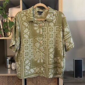 #paisley #bandana #sage #green #hunter #muted #vintage #boxy #tropical #vacation #buttondown #collar
