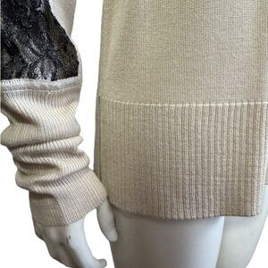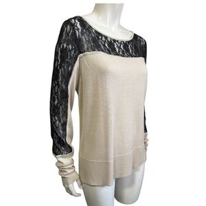 RACHEL Rachel Roy Shanghai Chic in Dove knit top with black lace yoke inset XL