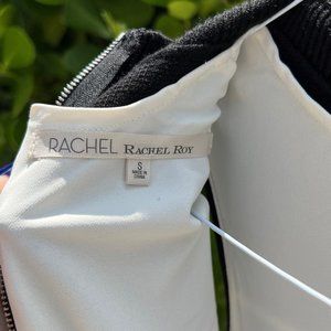 RACHEL Rachel Roy sweater dress fully lined with flowing cream bottom. Asymmetrical side slit on the sweater.