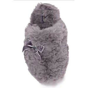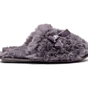 RACHEL Rachel Roy ✦ Ultra-Soft Faux Fur Slippers ✦ Grey Bow Detail Size S NWT