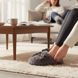 🌙 Style Tags: rachel roy slippers ✦ faux fur slippers ✦ grey bow slippers ✦ cozy chic ✦ lounge shoes ✦ plush slippers ✦ nwt slippers ✦ size small ✦ gift-ready
