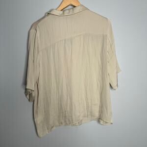 RACHEL Rachel Roy Women's Cream Lapel Collar Short Sleeve Button Down Shirt L