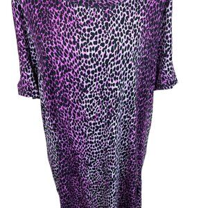 Cute leopard/animal print tunic/blouse by RACHEL Rachel Roy. In great condition. Has cold shoulder cutout and asymmetric hem. Side slit. Short sleeves.
