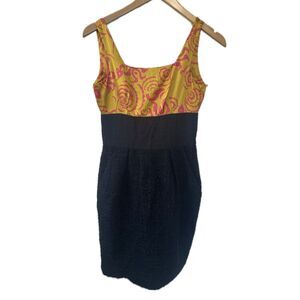 RACHEL Roy Floral Shanghai Ochre Lotus Color Block Mix Print Tweed Dress 2